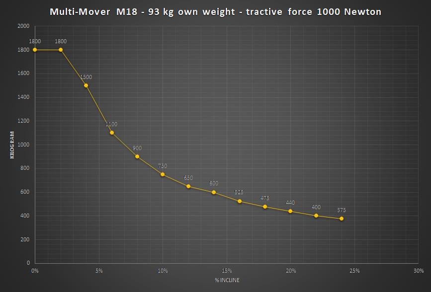 Most of the weight of the trailer comes on the top hitch of the M18 so this machine does not need to be made so heavy to have enough traction. There is also a shorter version M18 available.