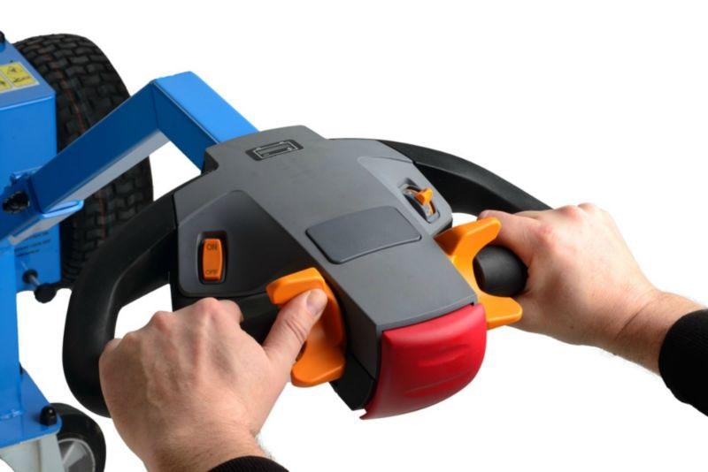 - Ergonomic tiller head with emergency stop, belly button
